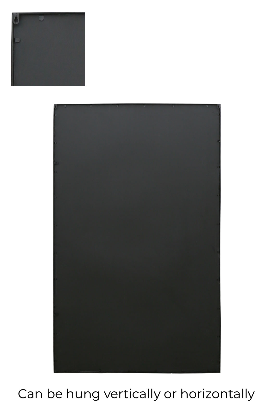 The mirror has 4x keyhole fixings on the back, so you can hang it either landscape or portrait. Simply fit wall screws level with the centre of the corresponding keyholes and hang the mirror directly. DO NOT USE STRING, WIRE, OR CHAIN. Please note screws and rawl plugs aren’t included.